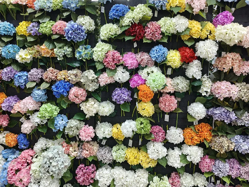 Hortensia artificial es nuestro producto con la mayoría de las muestras, con cientos de variedades, incluida la hortensia artificial única, la hortensia artificial múltiple, la hortensia de seda, la hortensia táctil real, etc. Los productos actualmente en los estantes están: