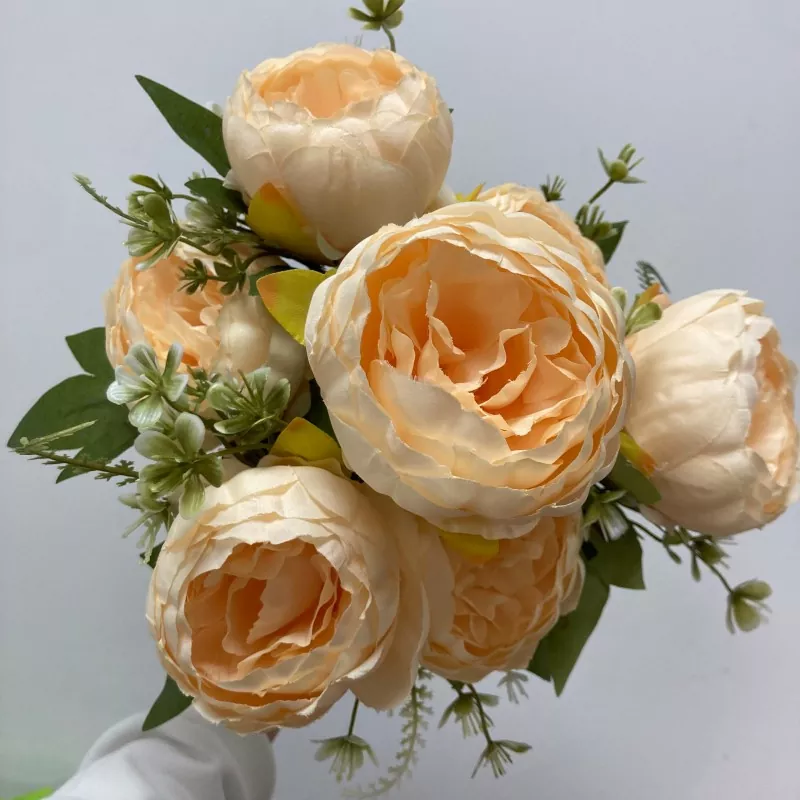Seda 7 cabezal peony flores artificiales ramo