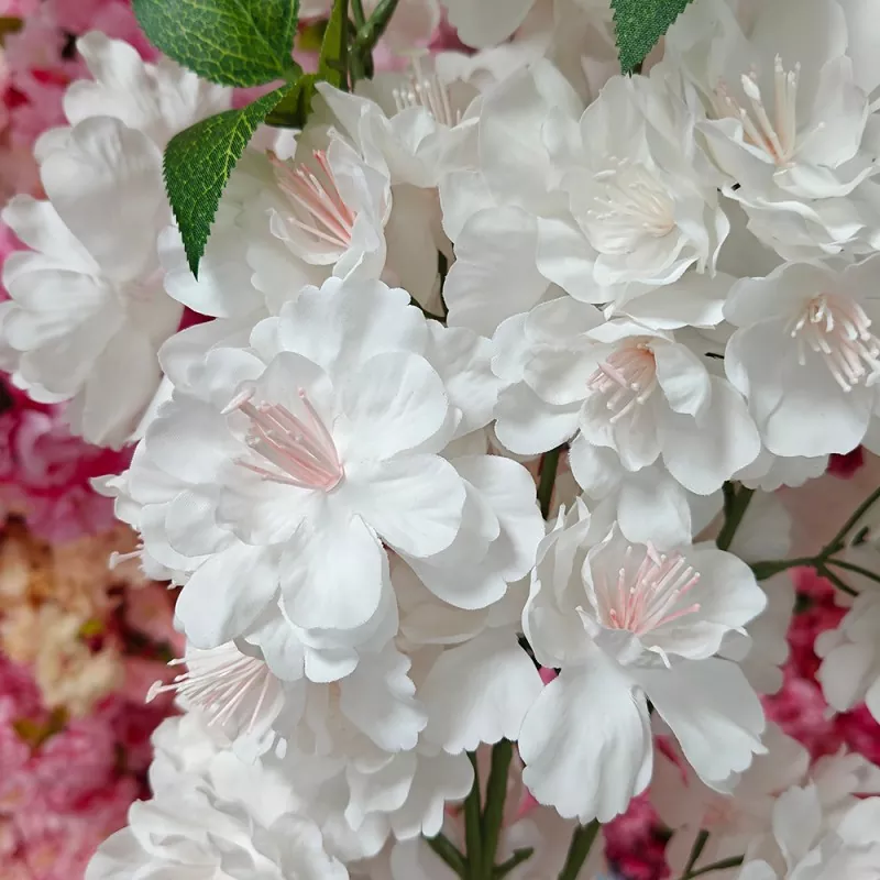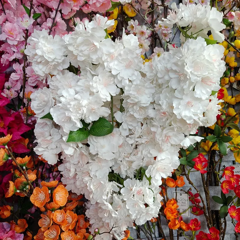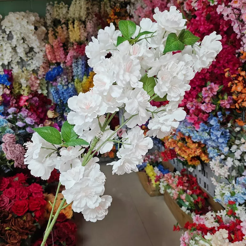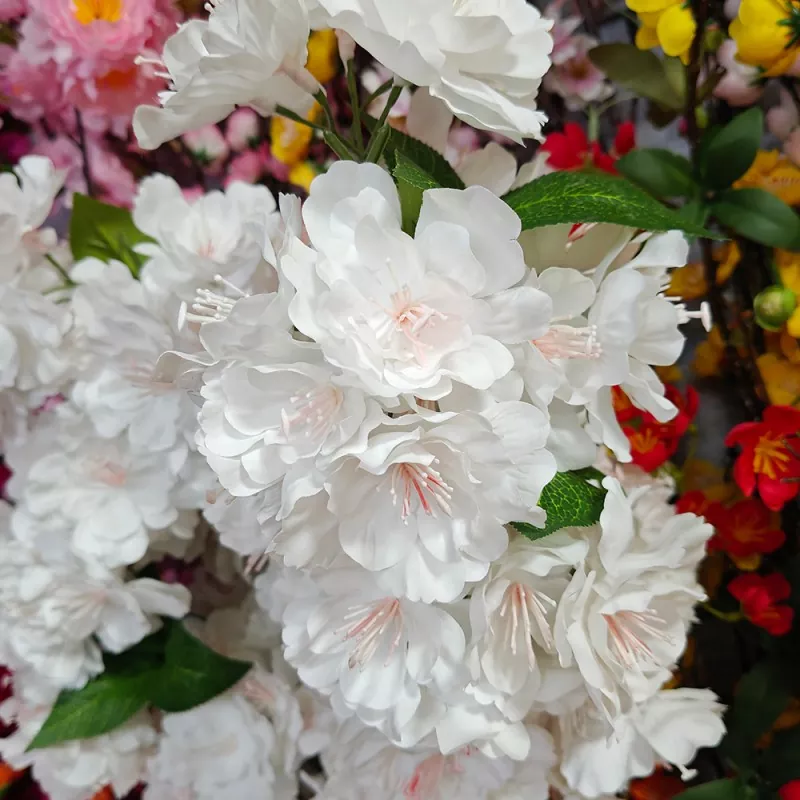 Las flores artificiales de la flor de cereza blanca de Ouli son retardantes de llama, lo que las hace ideales para aplicaciones resistentes al fuego.