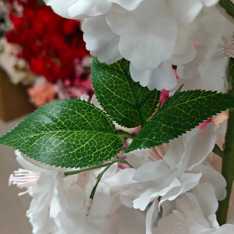 Las flores artificiales de la flor de cereza blanca han sido tratadas con un proceso de retardante de llama. Tanto las hojas como las flores son retardantes de la llama, lo que lo hace adecuado para su uso en entornos que requieren una alta protección contra incendios.